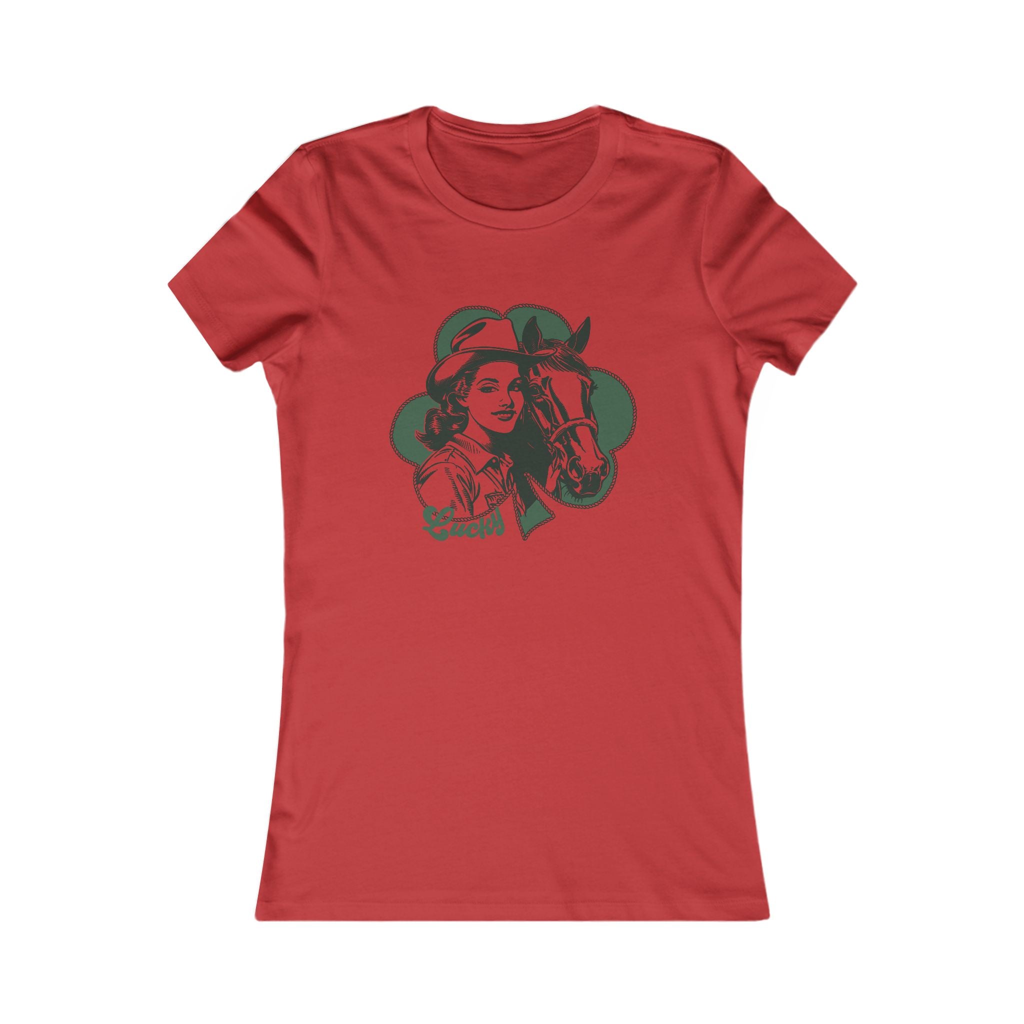 Our Lucky Cowgirl tee features a vintage-inspired cowgirl-and-horse graphic with a bold “Lucky” script—built to feel like an old favorite from the first wear. It’s a nod to the kind of women who ride steady, love hard, and keep their head up when the wind changes.