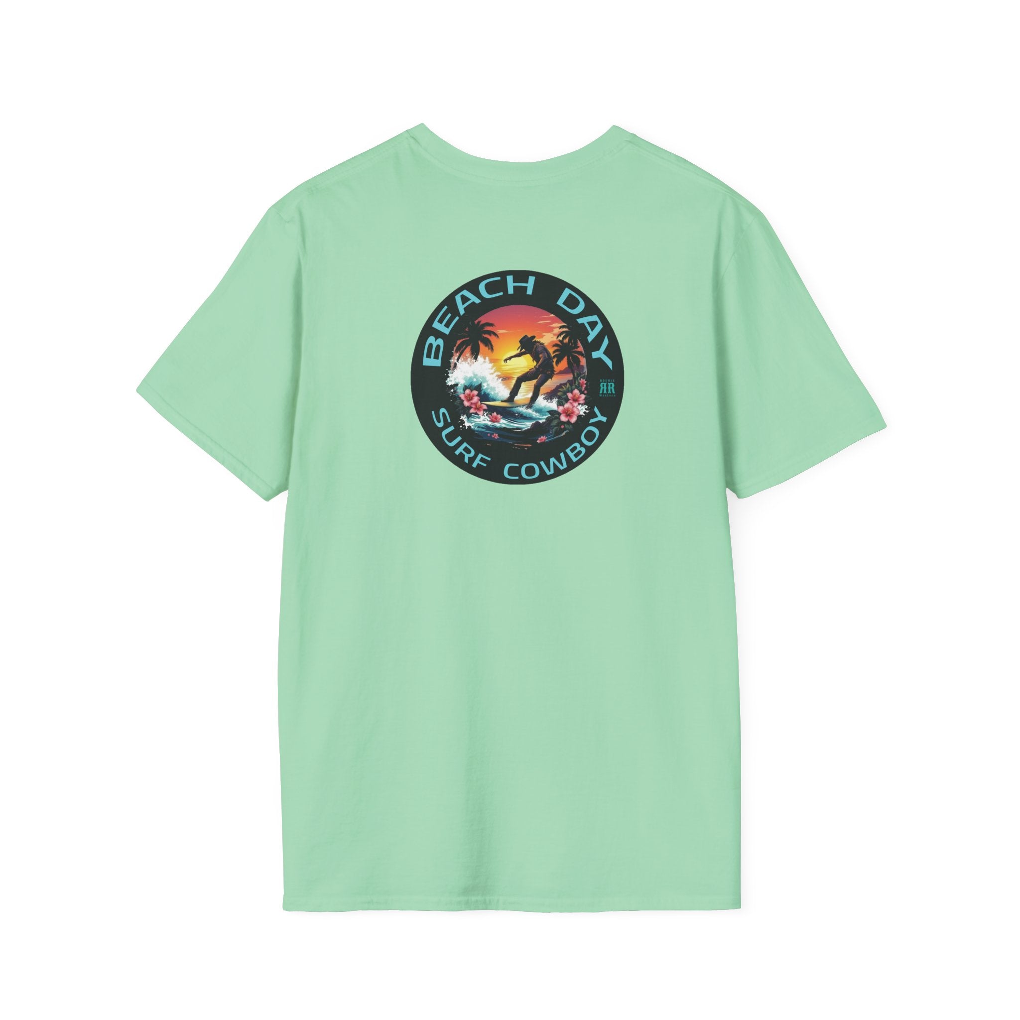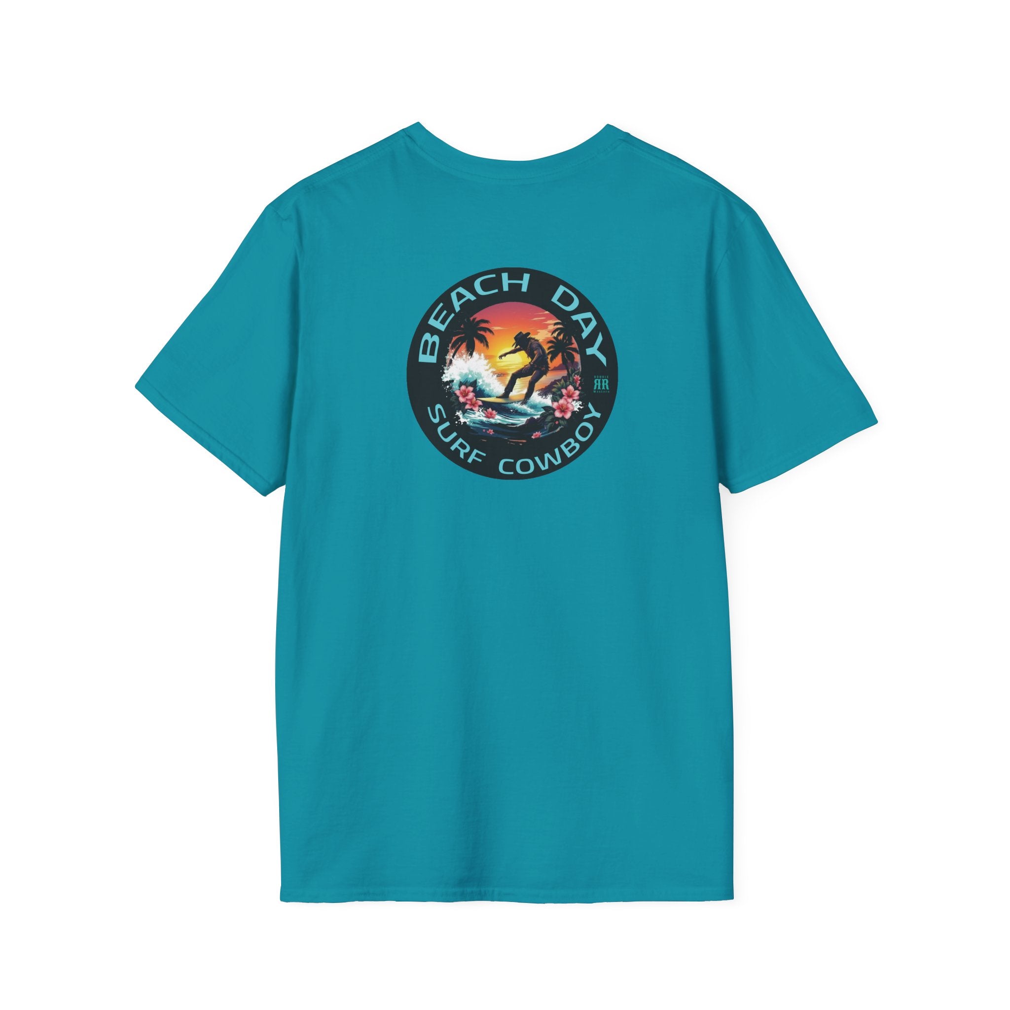 Step into the spirit of the islands with the "Island Cowboy Adventure" men's tee from Double R Western™. This design showcases a cowboy riding through ocean waves, surrounded by tropical elements, capturing the essence of adventure and resilience.