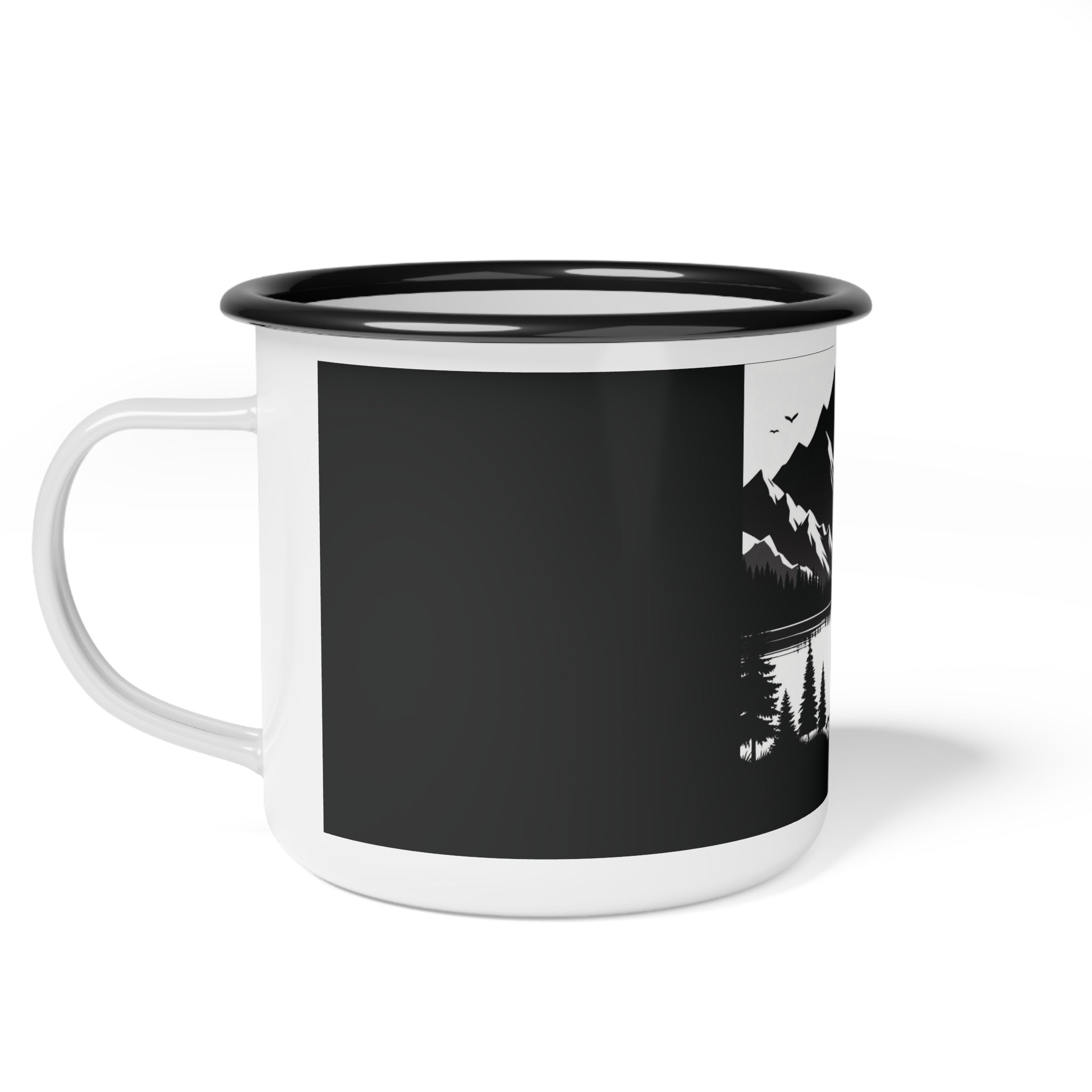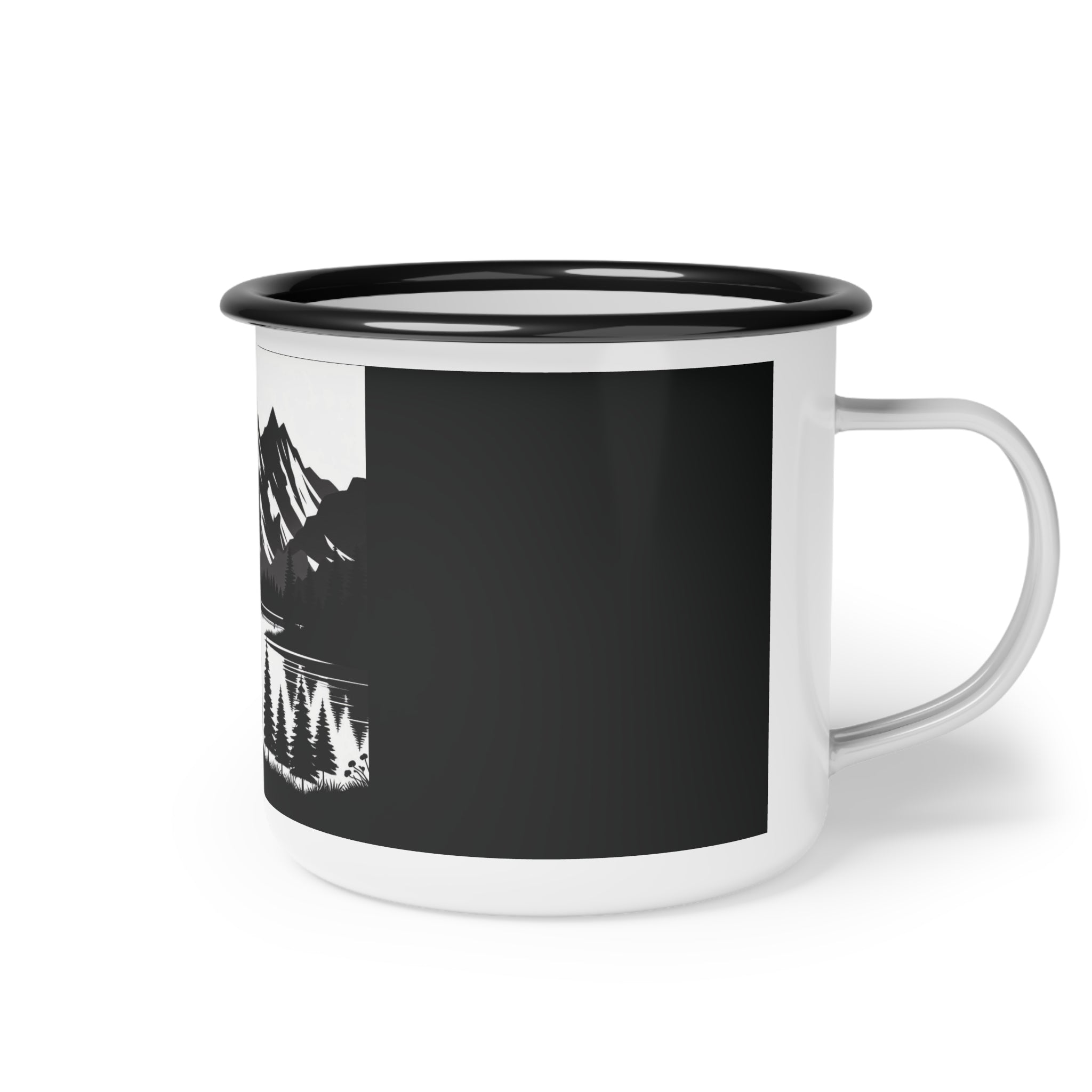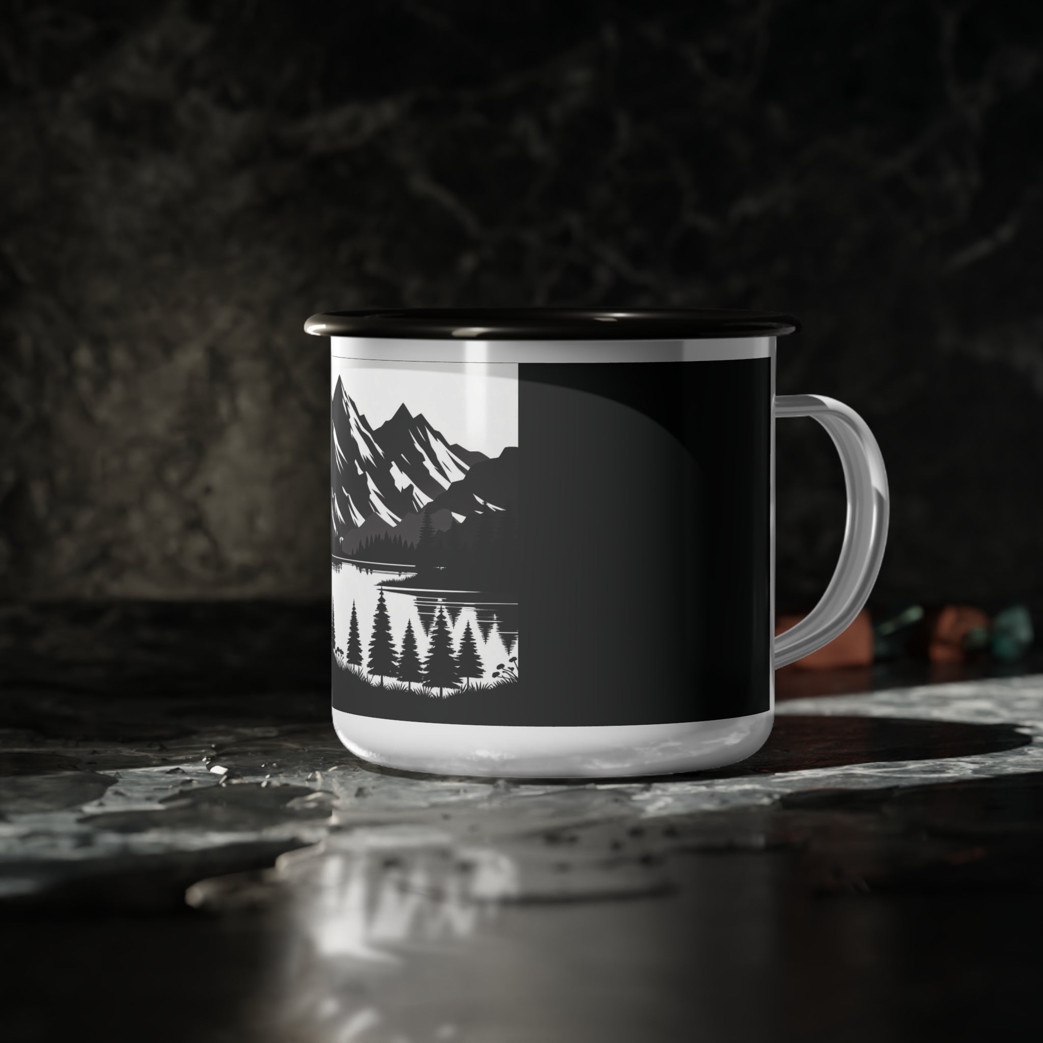 Experience the serenity of the wilderness with Double R Western's Enamel Camp Cup. Featuring a striking black-and-white layered mountain scene, this iconic cup captures the beauty of nature in every sip. Whether you're enjoying your favorite hot or cold beverages, this cup is the perfect companion for all your outdoor adventures.