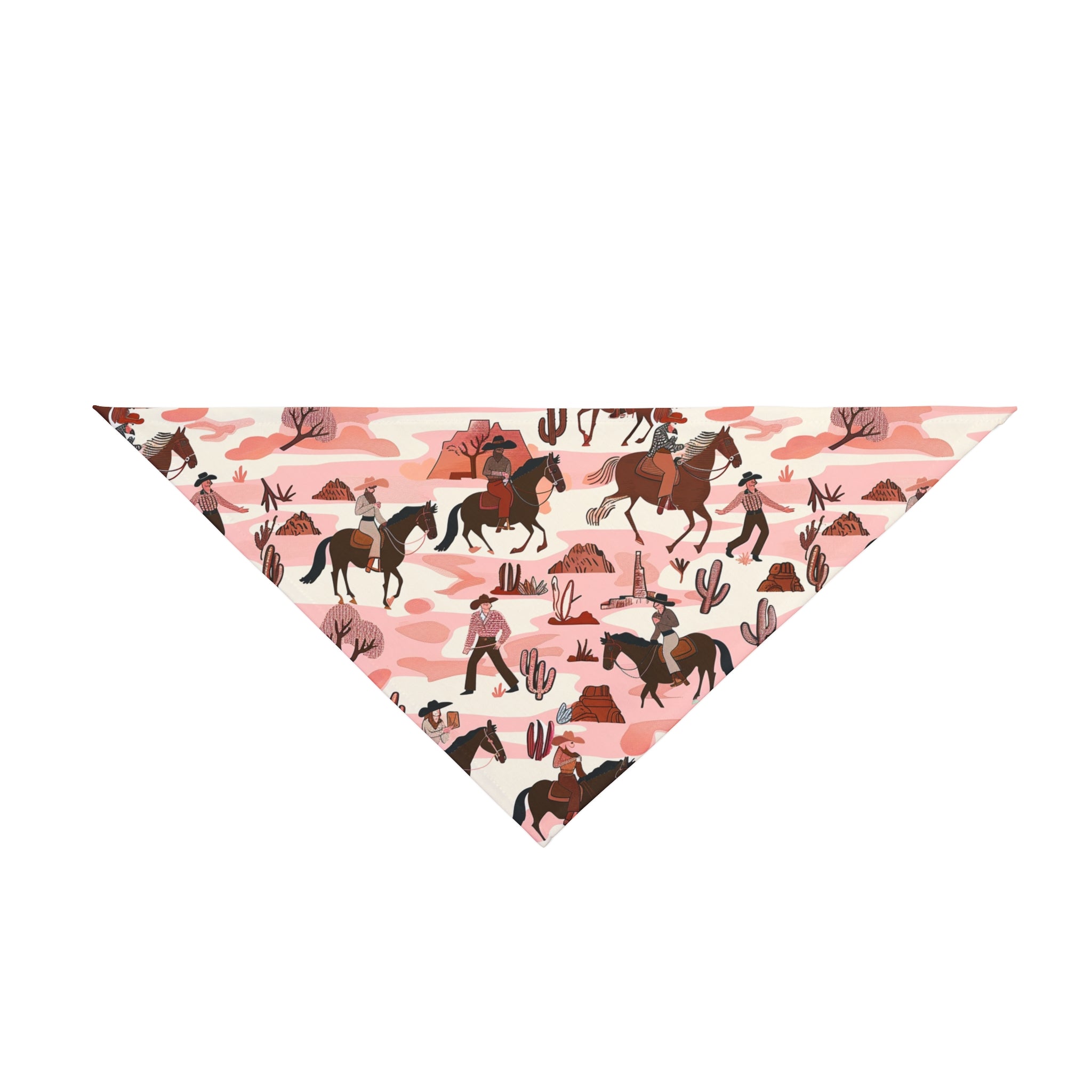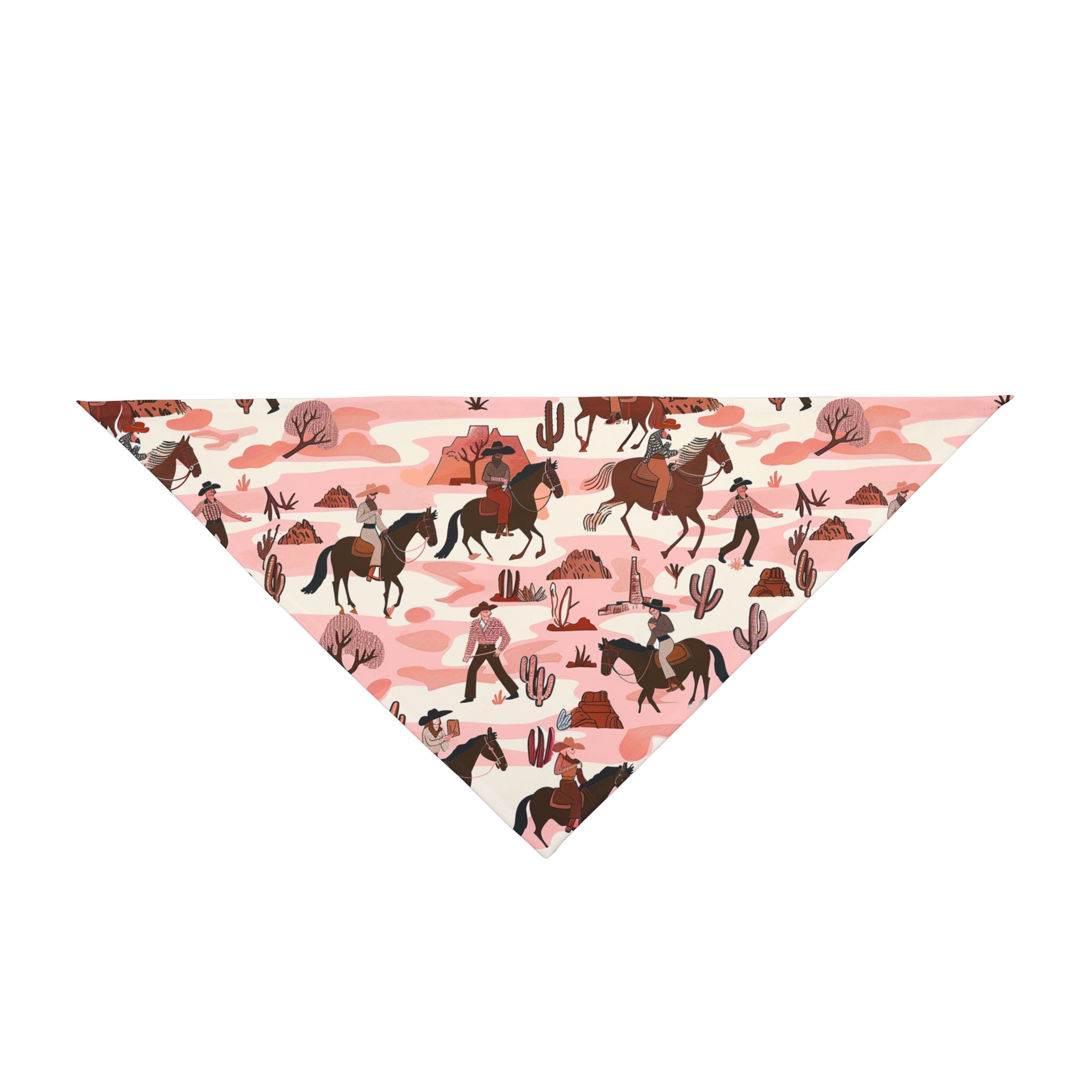 Giddy up, partner! Let your furry friend join the adventure with the "Western Trailblazer Dog Bandana" from Double R Western. This lively accessory features a vibrant scene of cowboys and horses traversing the rugged landscape, capturing the essence of the wild west.